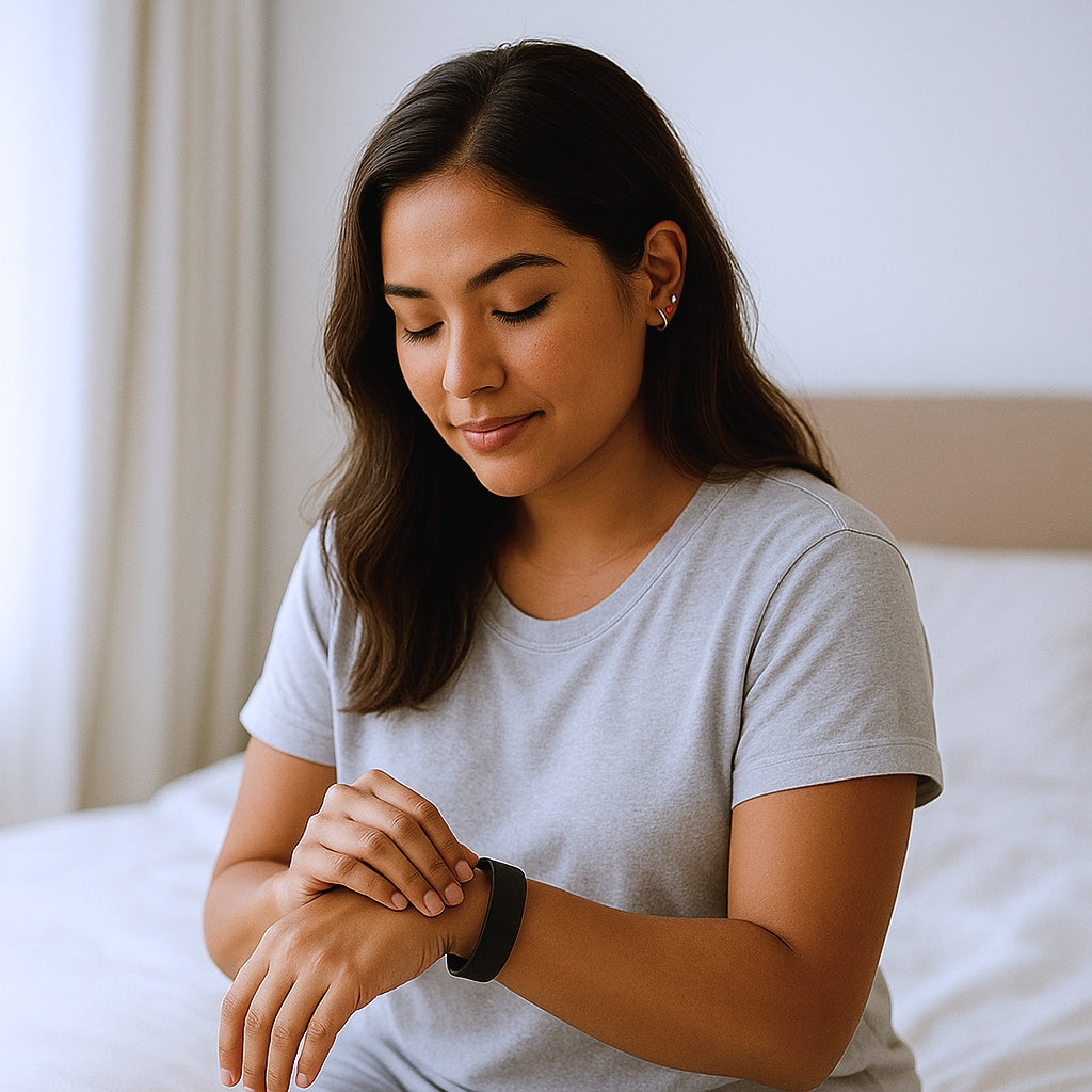 Yes. The wristband is made from soft, lightweight silicone that feels smooth against the skin. Most users say they forget they’re even wearing it after a few nights. It’s adjustable to fit all wrist sizes securely without feeling tight or bulky.