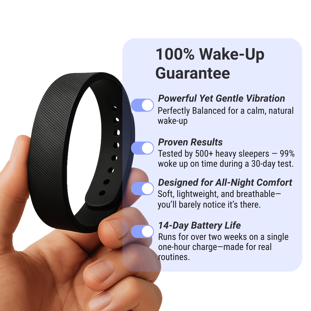 Yes! This alarm is made for deep sleepers and anyone who struggles to wake up with regular sound alarms or light clocks. It delivers a strong vibration that’s powerful enough to wake even the heaviest sleepers. In a test with over 500 users, 99% said they woke up on time within a 14-day period. Many people have had great results with it!